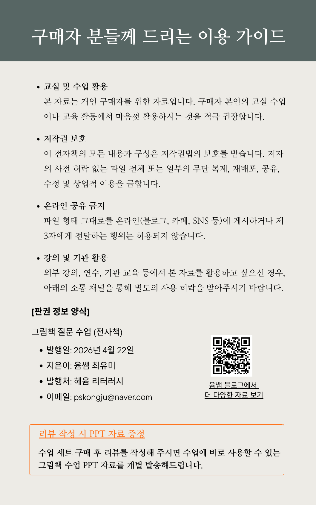리뷰를 남겨주시고 [메일/DM] 주시면 수업용 PPT 원본을 추가로 보내드립니다.