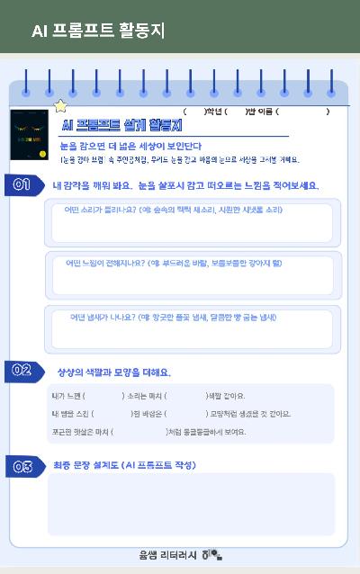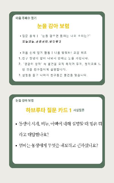 직접 설계하고 현장에서 검증한 '눈을 감아 보렴' 수업 패키지입니다.