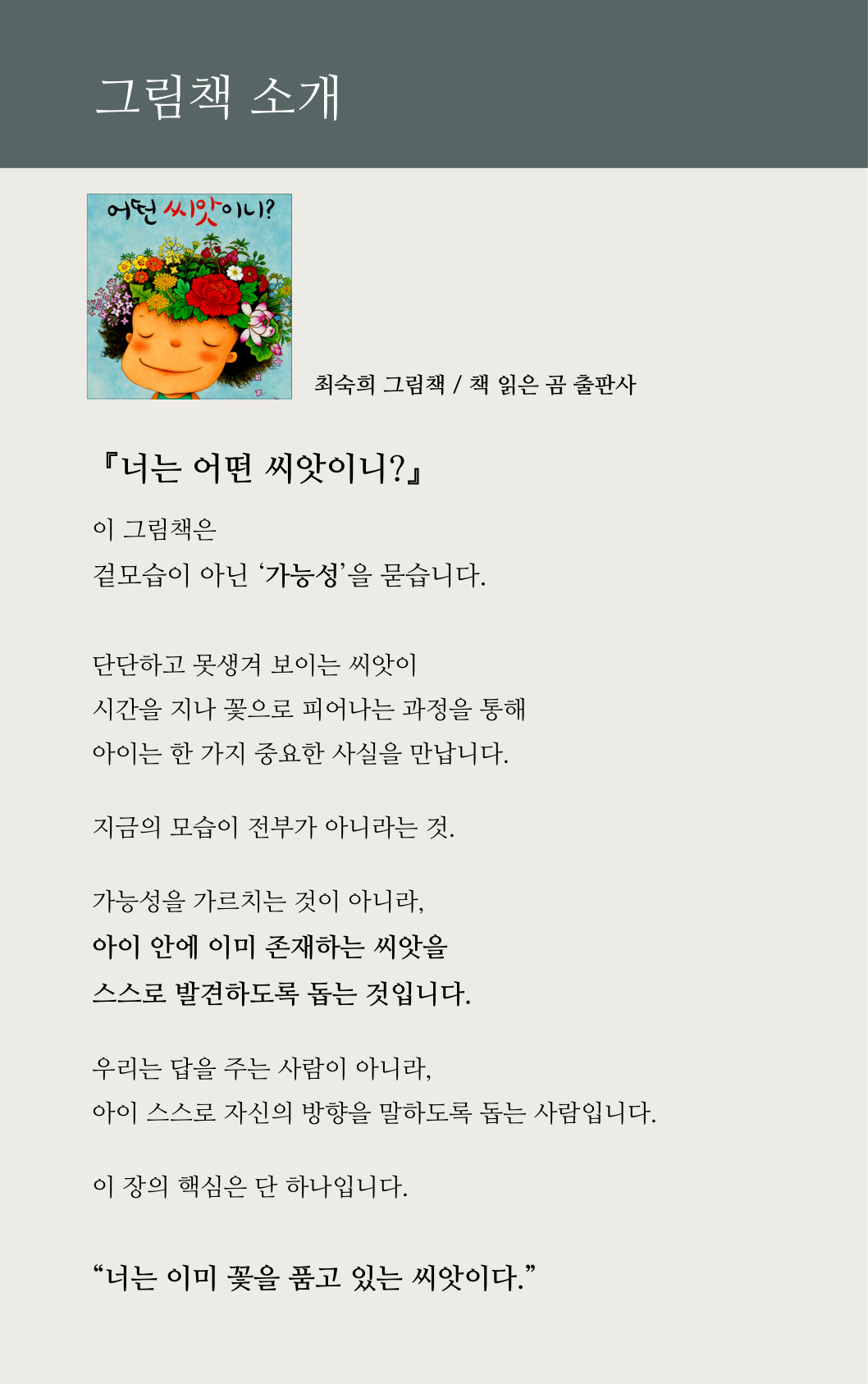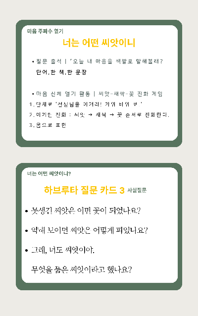 "지금 내 마음엔 어떤 씨앗이 잠자고 있을까요?" 질문으로 시작하는 다정한 도입