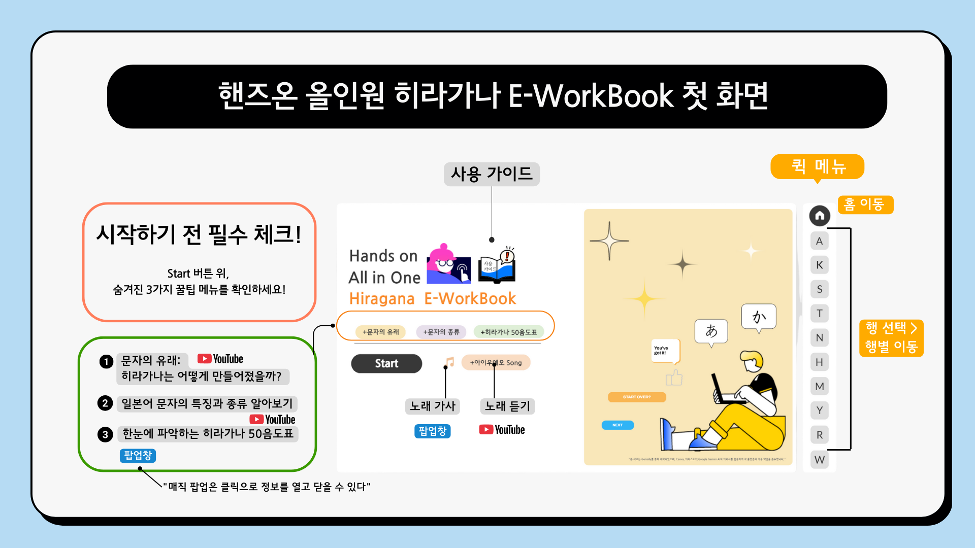 동료 및 후배 선생님들의 수업 준비 시간을 단 10분이라도 아껴드리고 싶은 마음을 담아, 히라가나 A행과 Ka행 콘텐츠를 공유합니다.