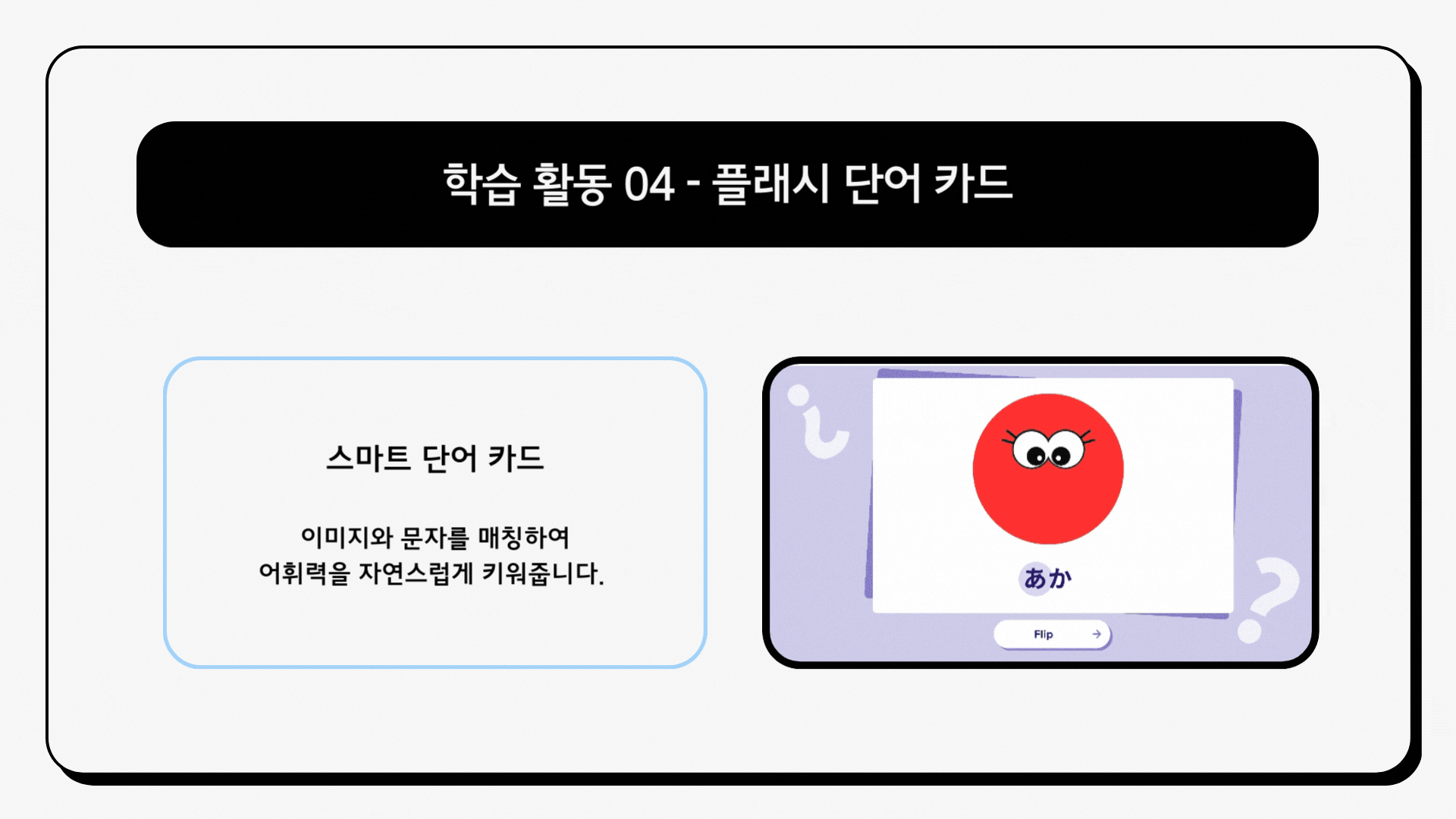 4. 스마트 플래시 카드: 이미지와 문자를 매칭하여 어휘력을 자연스럽게 높여줍니다.