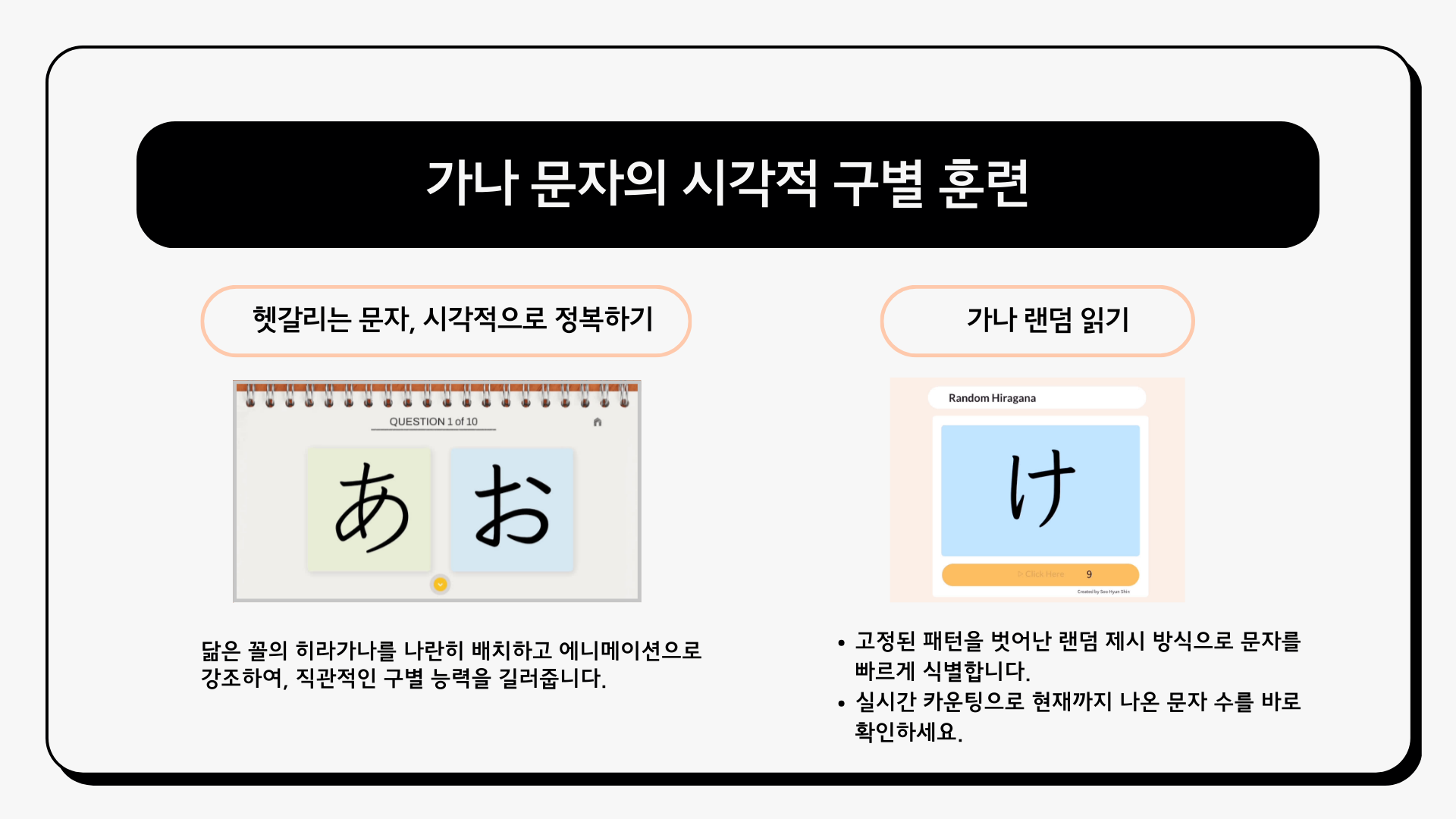 04 FlashCards :  단어와 이미지를 연결하는 연상 학습 /  H-K Matching : (가타카나) 히라가나와 가타카나를 1:1로 매칭하는 전이 학습