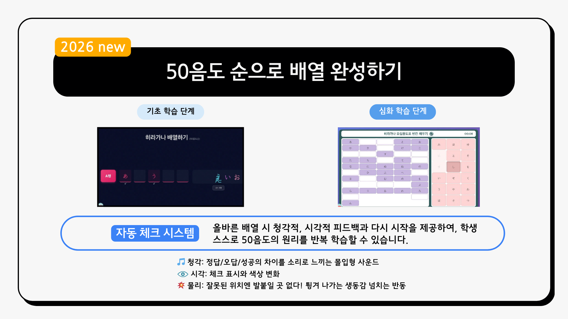 현직에서의 고민과 에듀테크 노하우를 집약한 [핸즈온 올인원 히라가나 E-워크북] 2026년형 풀 콘텐츠를 드디어 공개합니다!