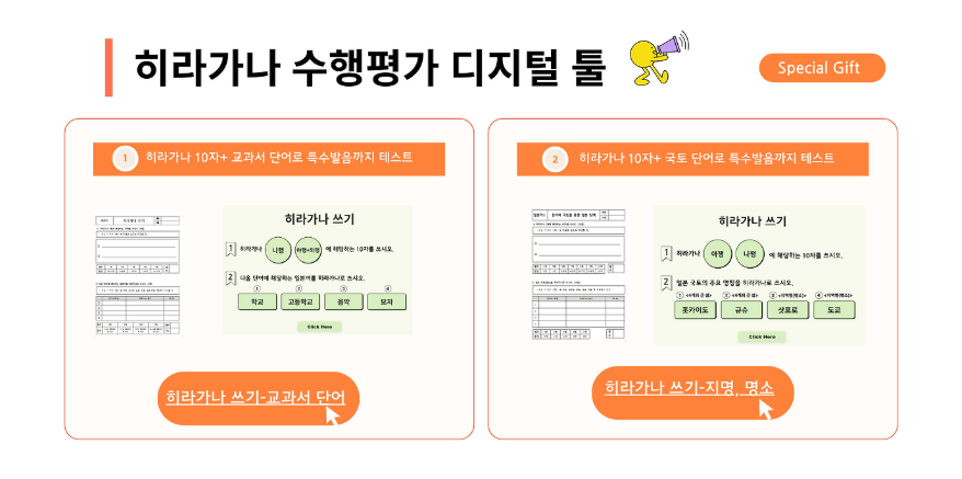 개인 또는 학교 예산으로 구매하신 선착순 10분의 선생님께는 [맞춤형 수행평가 제작 서비스]를 제공합니다. 선생님의 학교 진도와 단어에 맞춰 제가 직접 히라가나 에듀테크 툴을 제작해 드립니다!