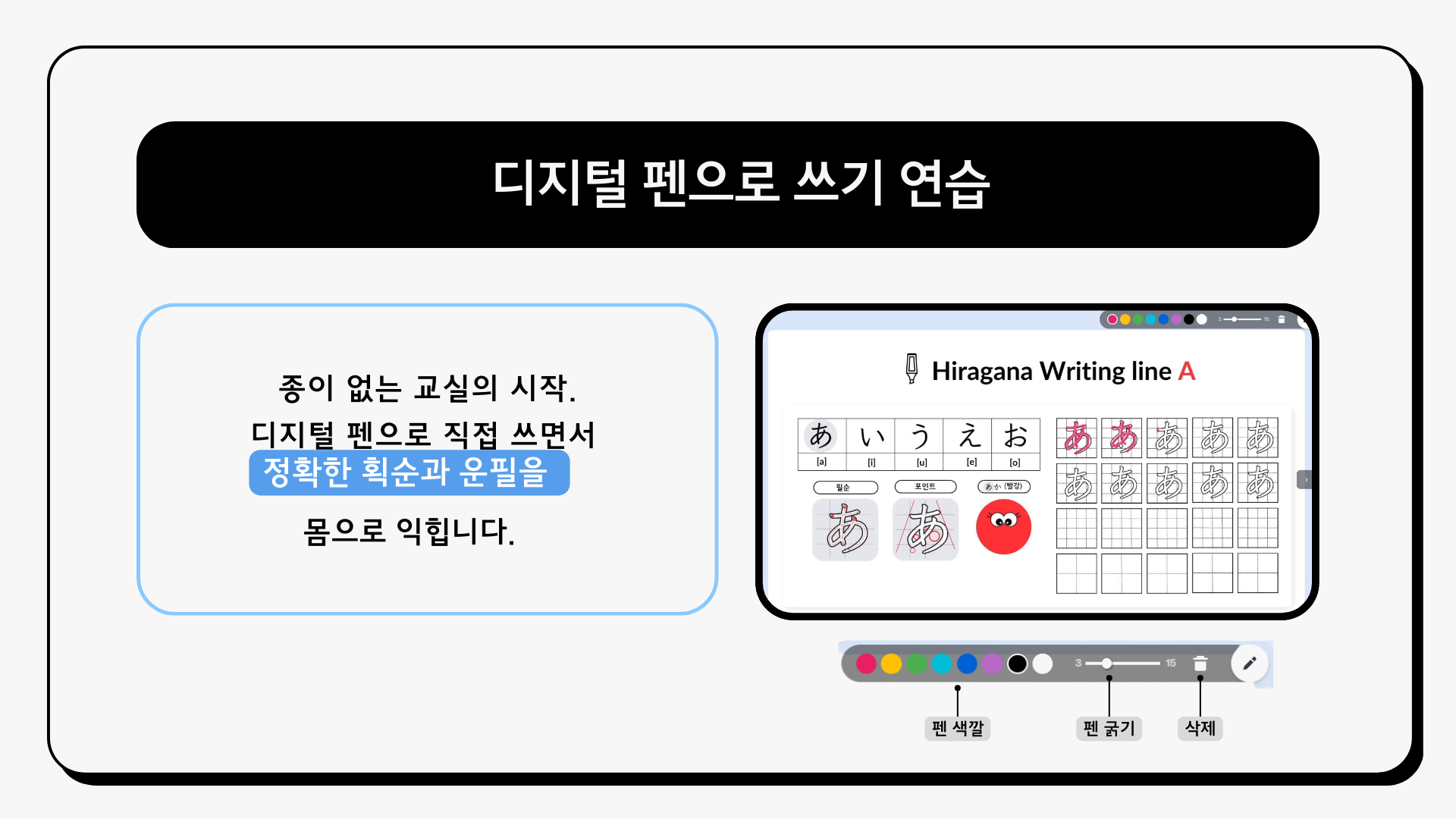 Hello, EduTech가 제공하는‘히라가나 수행평가 툴’을 활용하면 에듀테크의 진정한 가치를 경험하실 수 있습니다.
