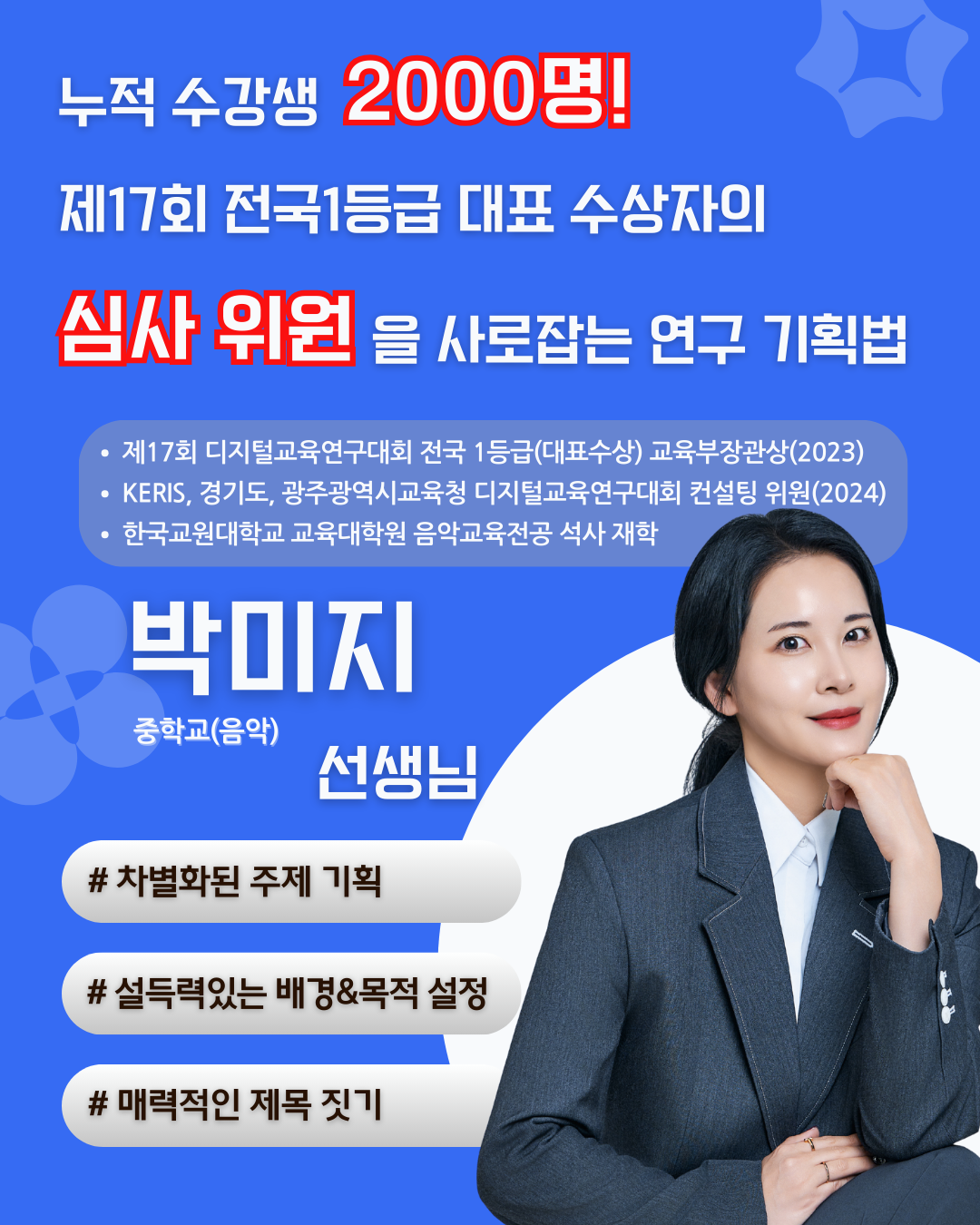 박미지: 누적 수강생 2000명! 제17회 전국 1등급 대표수상자의 심사위원을 사로잡는 연구 기획법