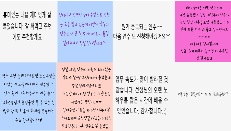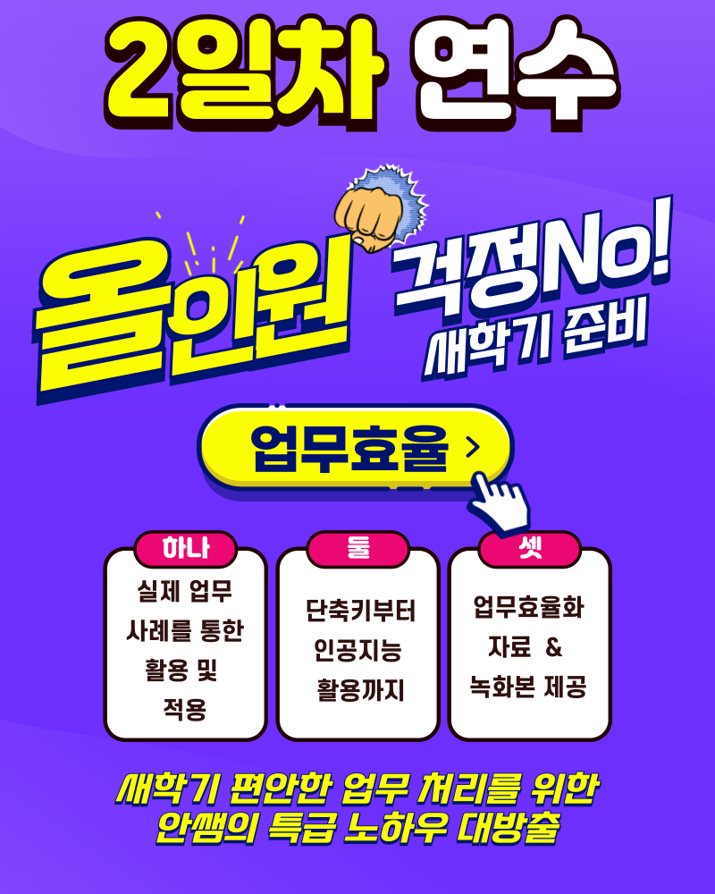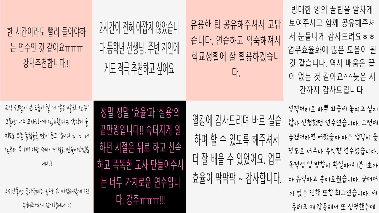 안쌤의 모든 것을 알려드리는 연수로, 모든 질문과 전달이 끝날때까지 무제한으로 드리겠습니다.