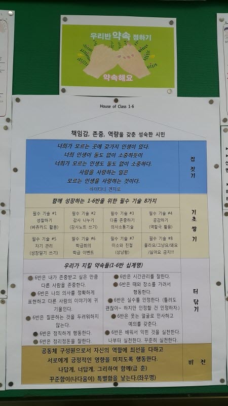 (학급에서 정한 규칙을 지키지 않는 학생들은 소위 '노력지'를 쓰는데, 다른 반과 달리 저희반 학생들은 1-6반 십계명을 여러 번 옮겨적습니다.)