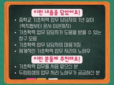 하지만 중학교에서 기초학력 업무를 8년째 맡아온 두링링 선생님이 차근차근 기초학력 업무 담당자의 한 해 살이에 대해 알려드릴테니 걱정하지 않으셔도 됩니다!