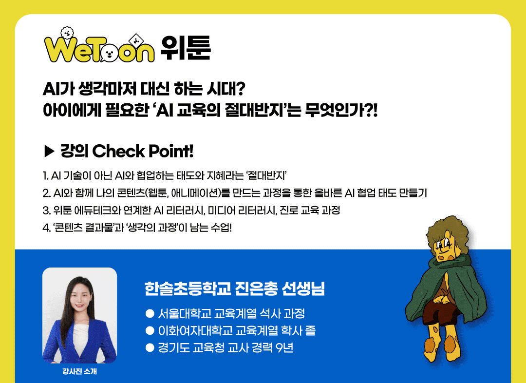 AI와 협업해 나만의 콘텐츠를 만드는 에듀테크 서비스 WeToon(위툰) 수업의 제왕을 만나보세요!