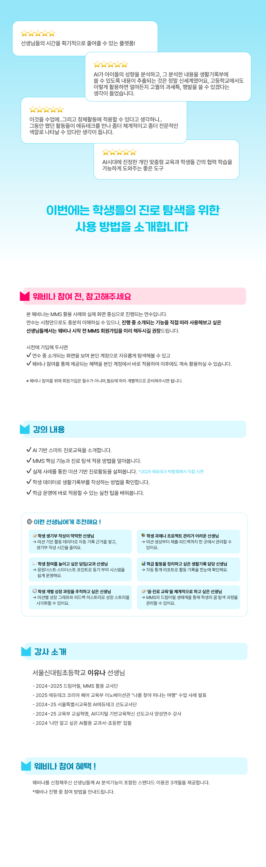모임 소개 : 학생들에게 진로 탐색을 위한 미션을 부여하고 실천 결과를 AI로 분석하여 진로 찾아보고 생기부에 활용하는 과정을 공유합니다.