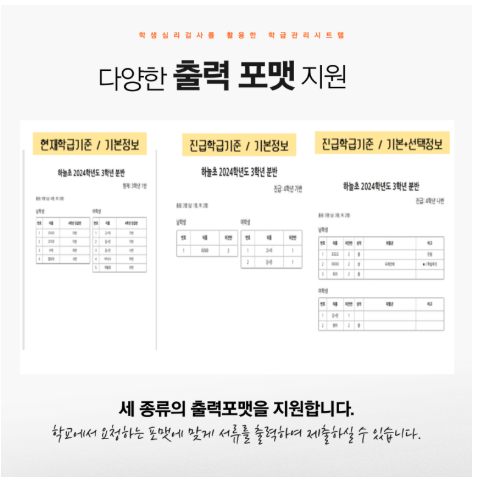 ( 엑셀 X / 손배정 X / 학급별 통계 데이터 제공 )