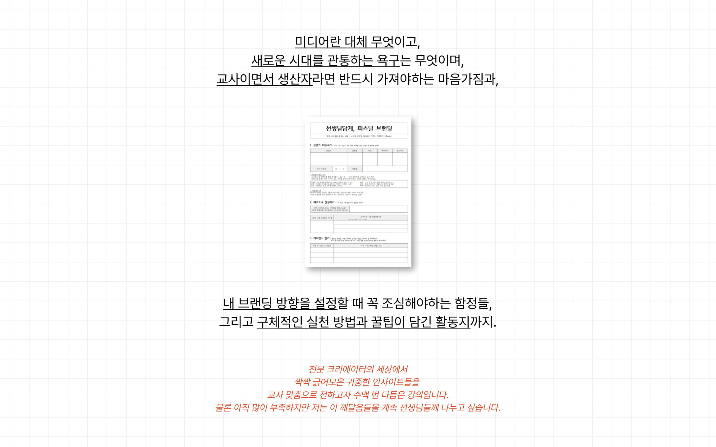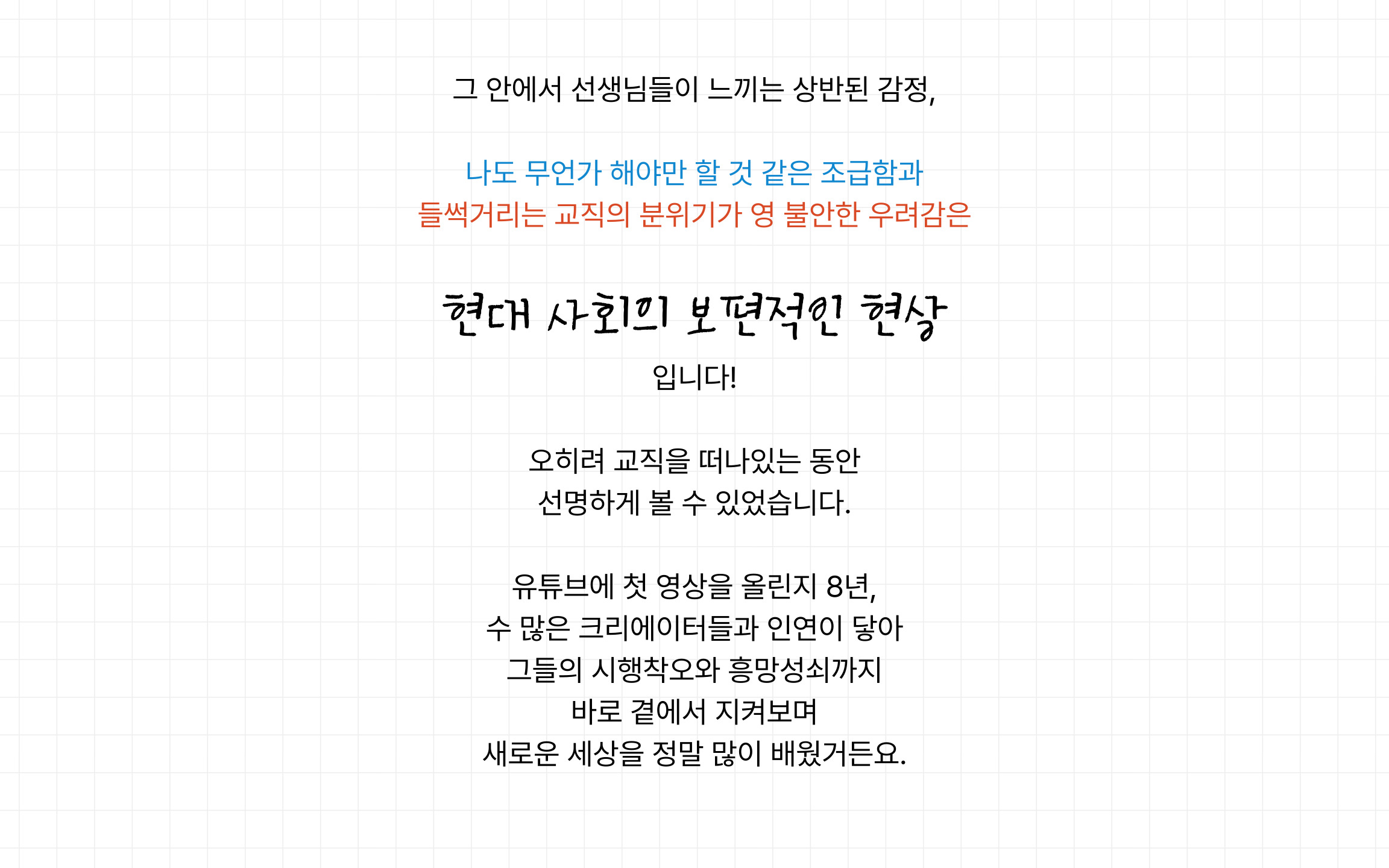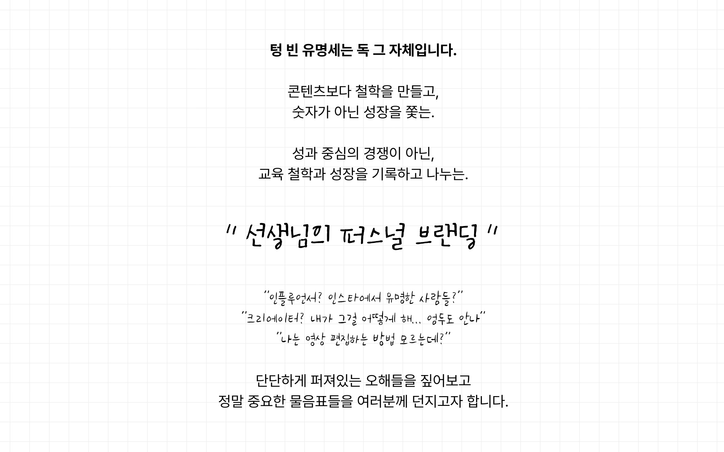 콘텐츠보다 철학을, 조회수보다 성장을 만드는 교사 맞춤 퍼스널 브랜딩!