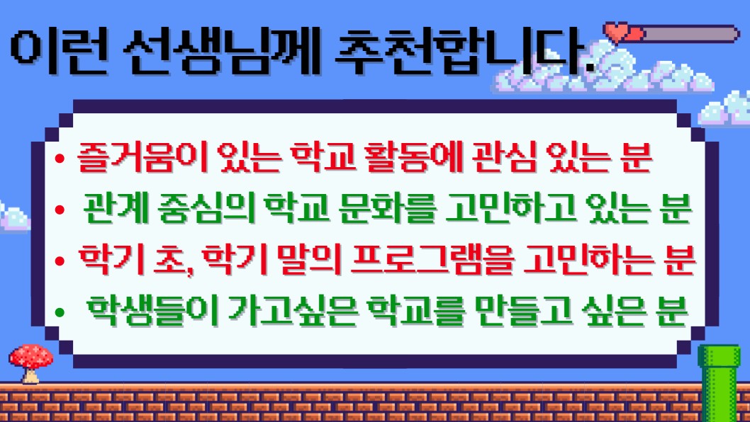 학생들이 매일 등교할 때도 ‘억지로 오는 학교’가 아니라 기대하며 들어오는 학교가 될 수는 없을까요?