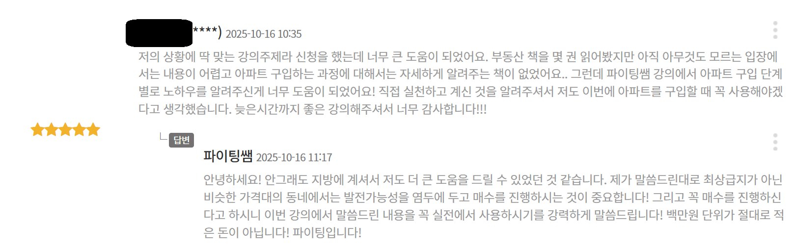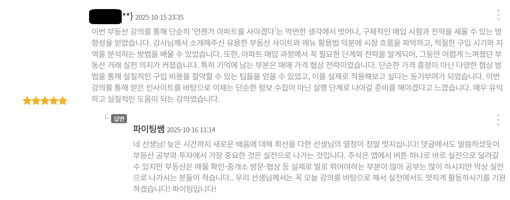 안녕하십니까! 선생님 지킴이 파이팅쌤입니다. 교직 모토 권위있는 교사가 되어 편안한 학급 운영을 하고 축적된 에너지를 나의 미래를 위해 투자한다 채널주제 권위있는 교사의 학급 경영 //모르면 손해보는 교사 필수 정보// 마음 편한 부동산 투자 // 마음 편한 주식 투자 강의 목록 1. 권위있는 교사의 교사는 편안하고 학생은 안정을 느끼는 학급 경영 2. 내 집 마련 완벽 준비! 아파트 매수 단계별 필수 강의! 3. 절대로 보증금 잃을 걱정 없는 안전한 전세 구하기 강의! 4. 미국 성장주 가치투자 하기!