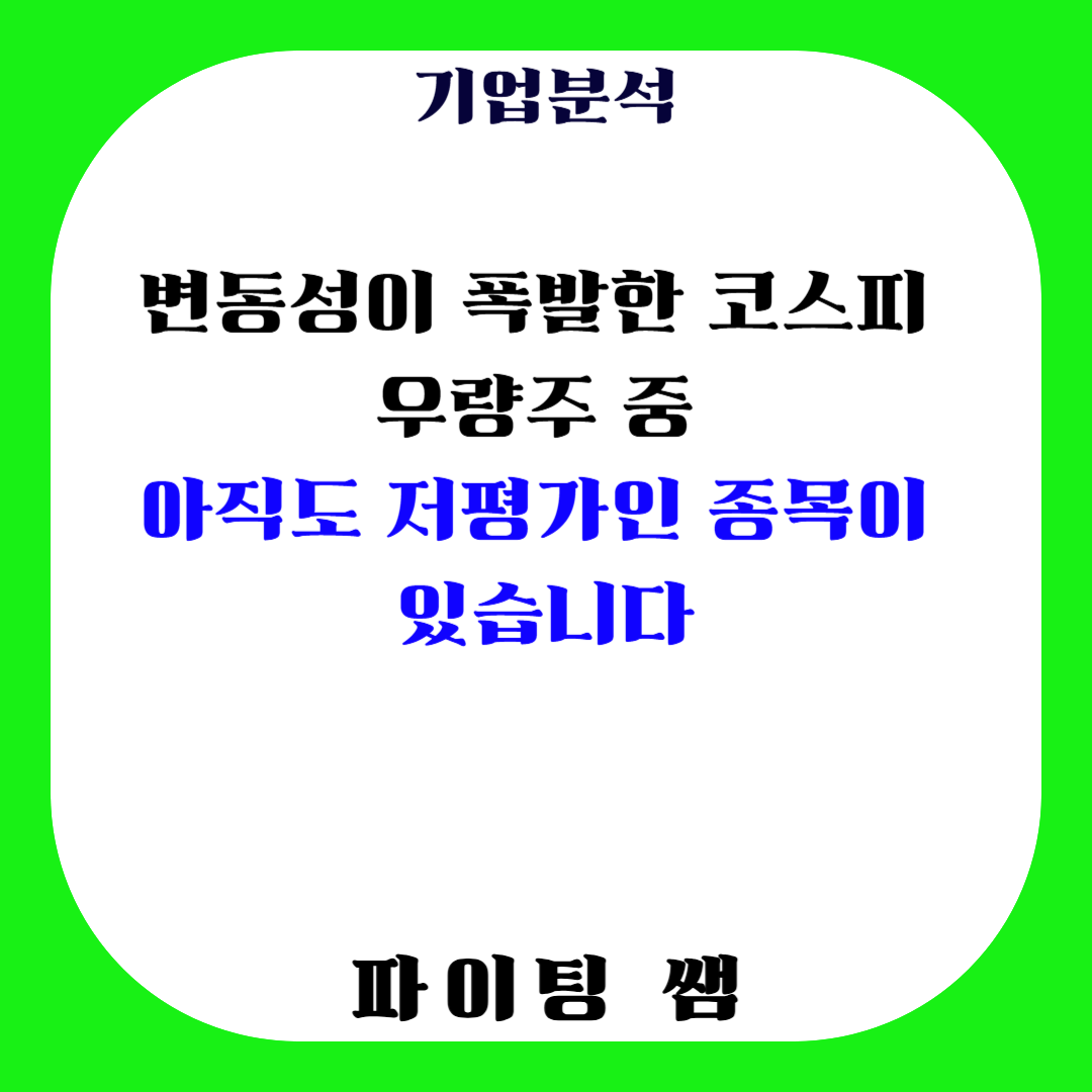 변동성이 폭발한 코스피 우량주 중 아직도 저평가인 종목이 있습니다.