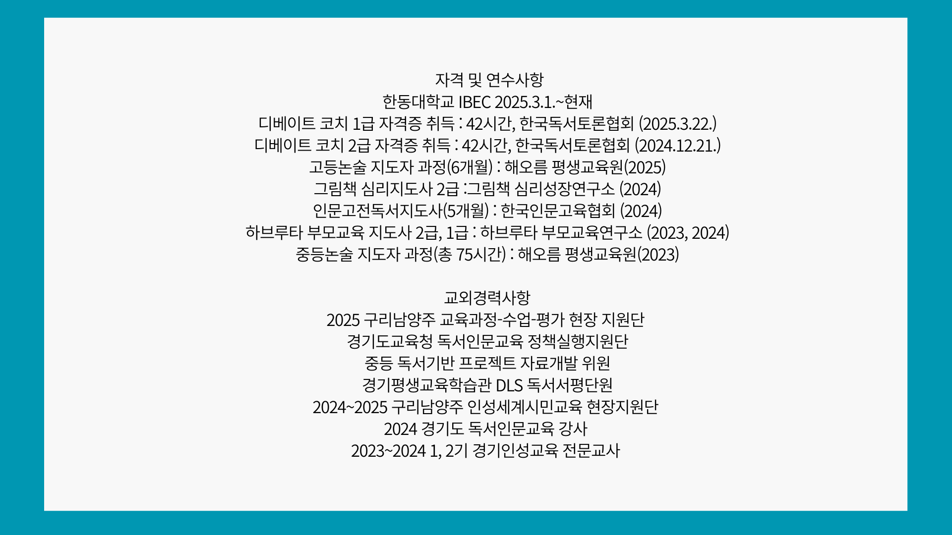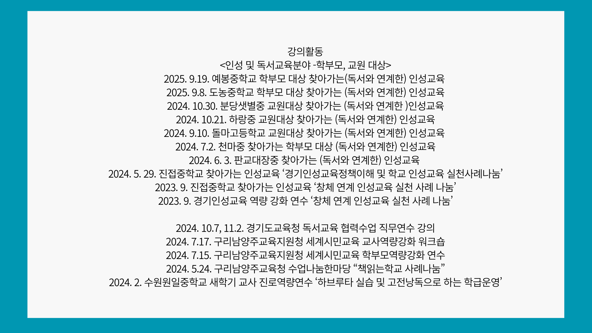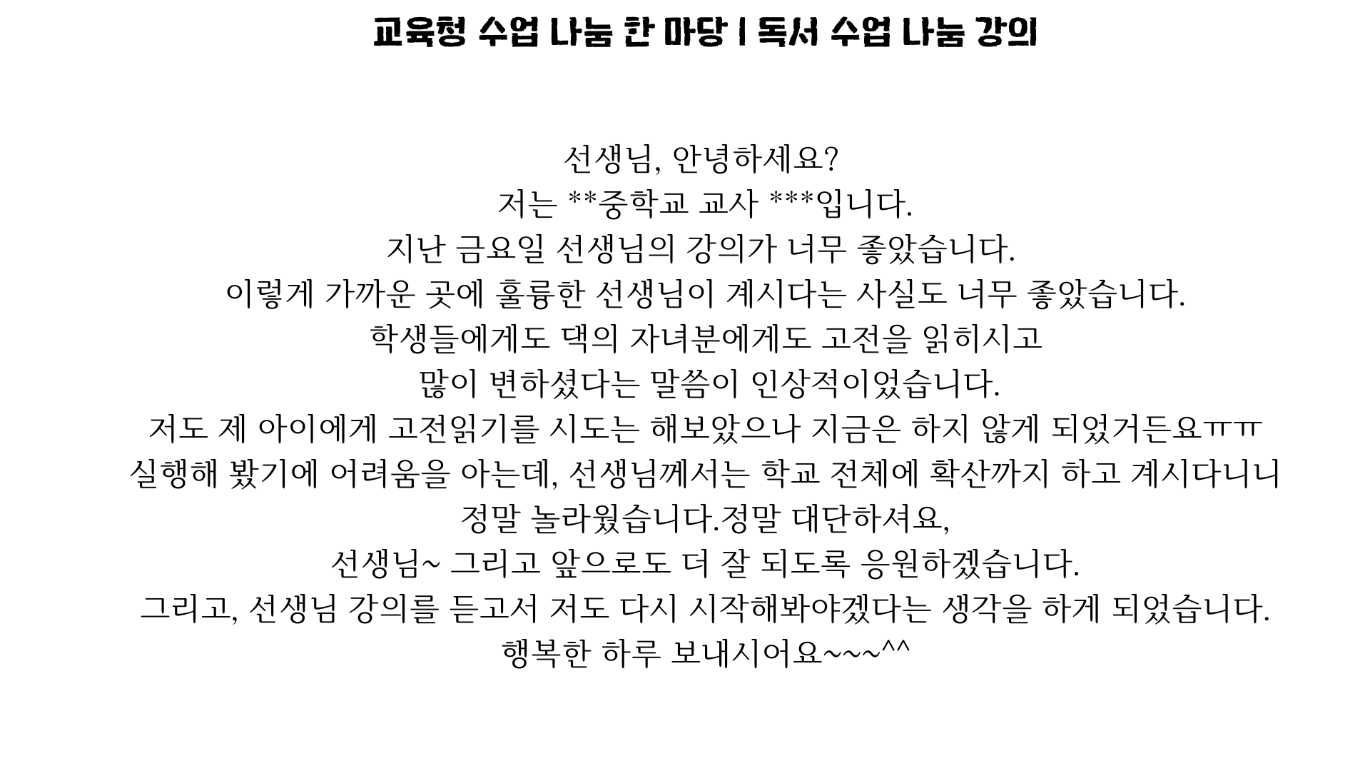 실제 교실과 가정에서 적용 가능한 독서·코칭 실천 사례를 진솔하게 공유합니다.