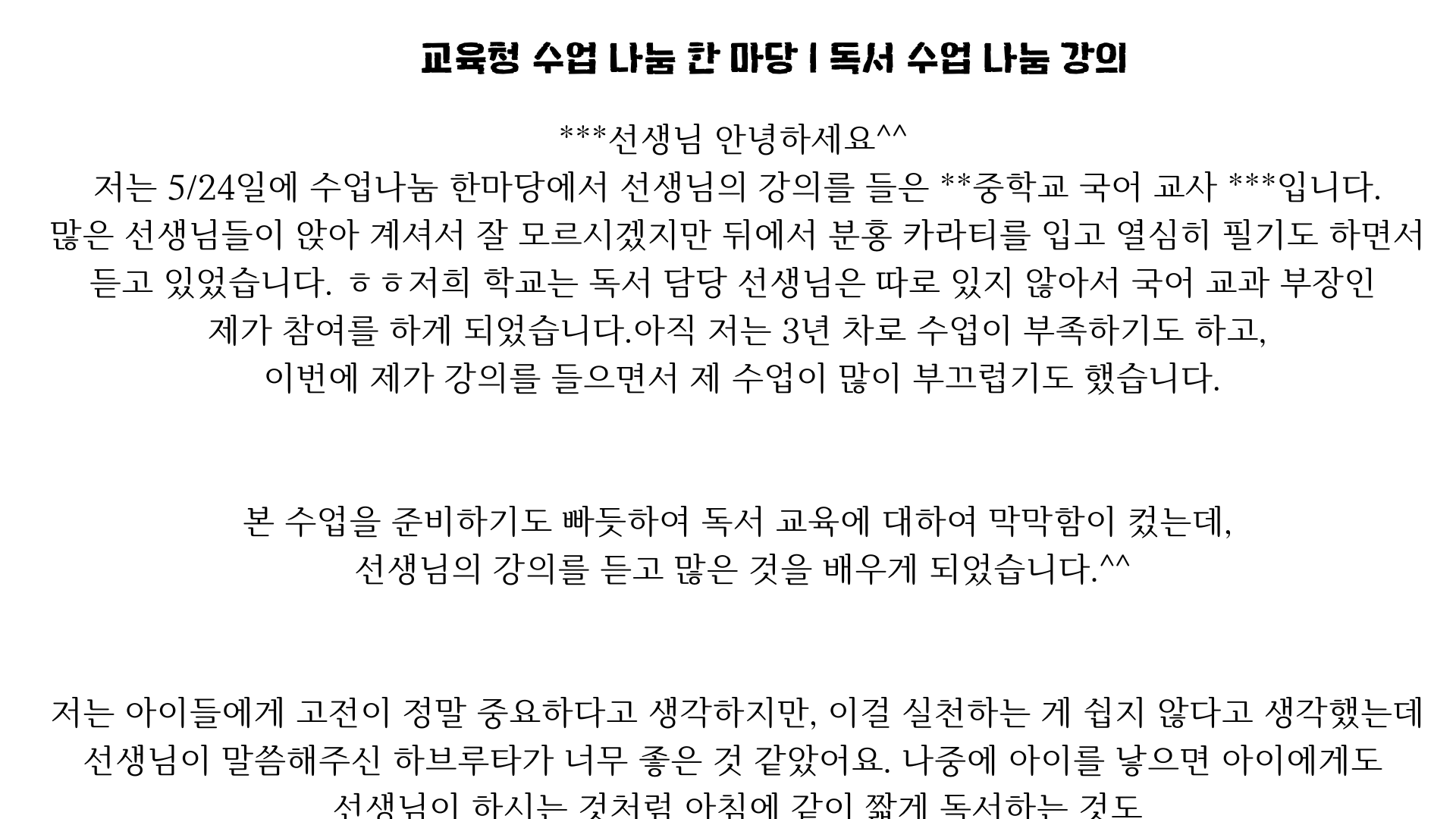 강의 후 강의 후기를 정성스럽게 남겨주신 분들께는 각종 자료(학급, 학교, 자녀에게 바로 사용하실 수 있는 자료)를 나눔하려고 합니다.