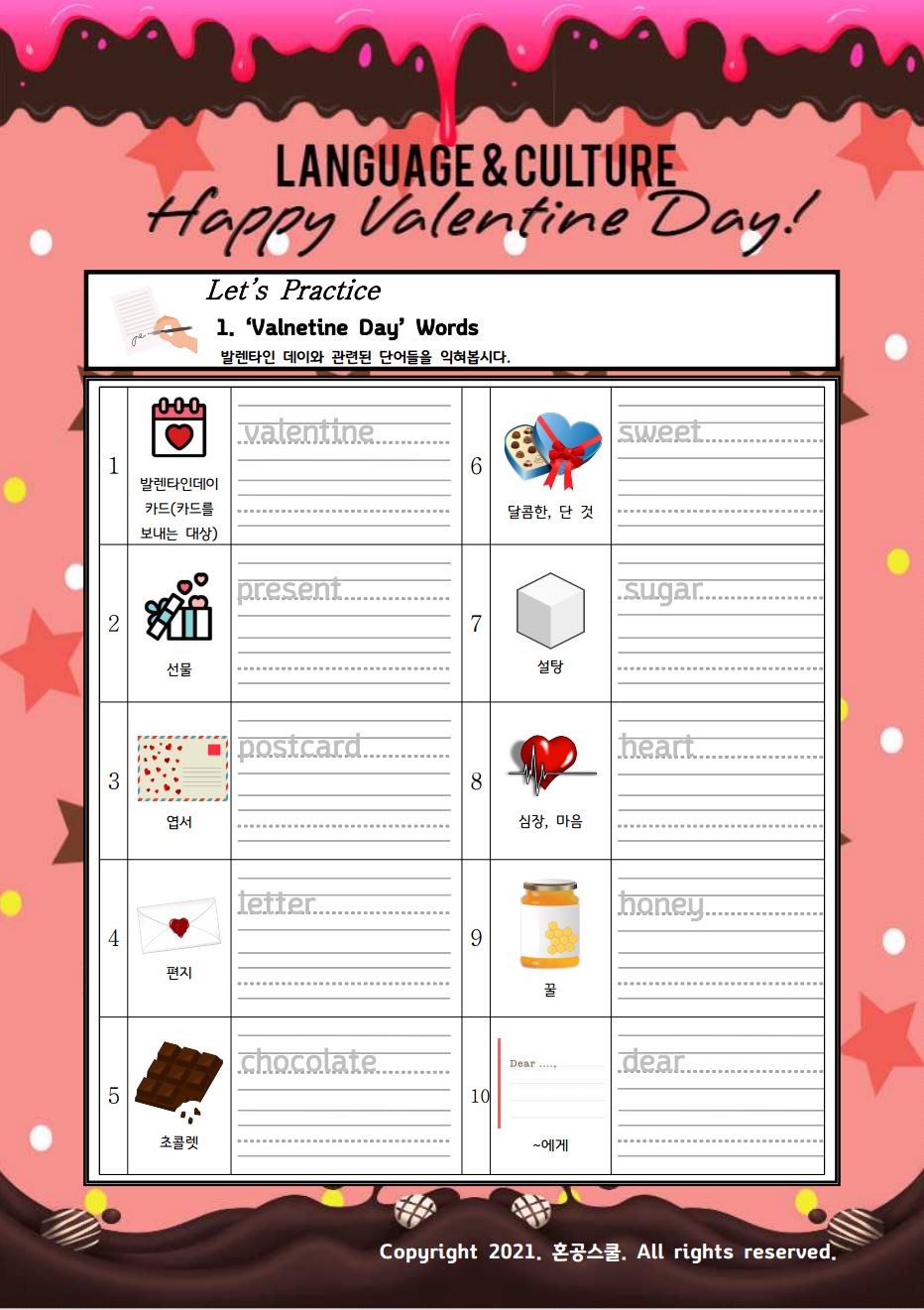 발렌타인 데이와 관련된 단어들과 문화 기사들을 익히고