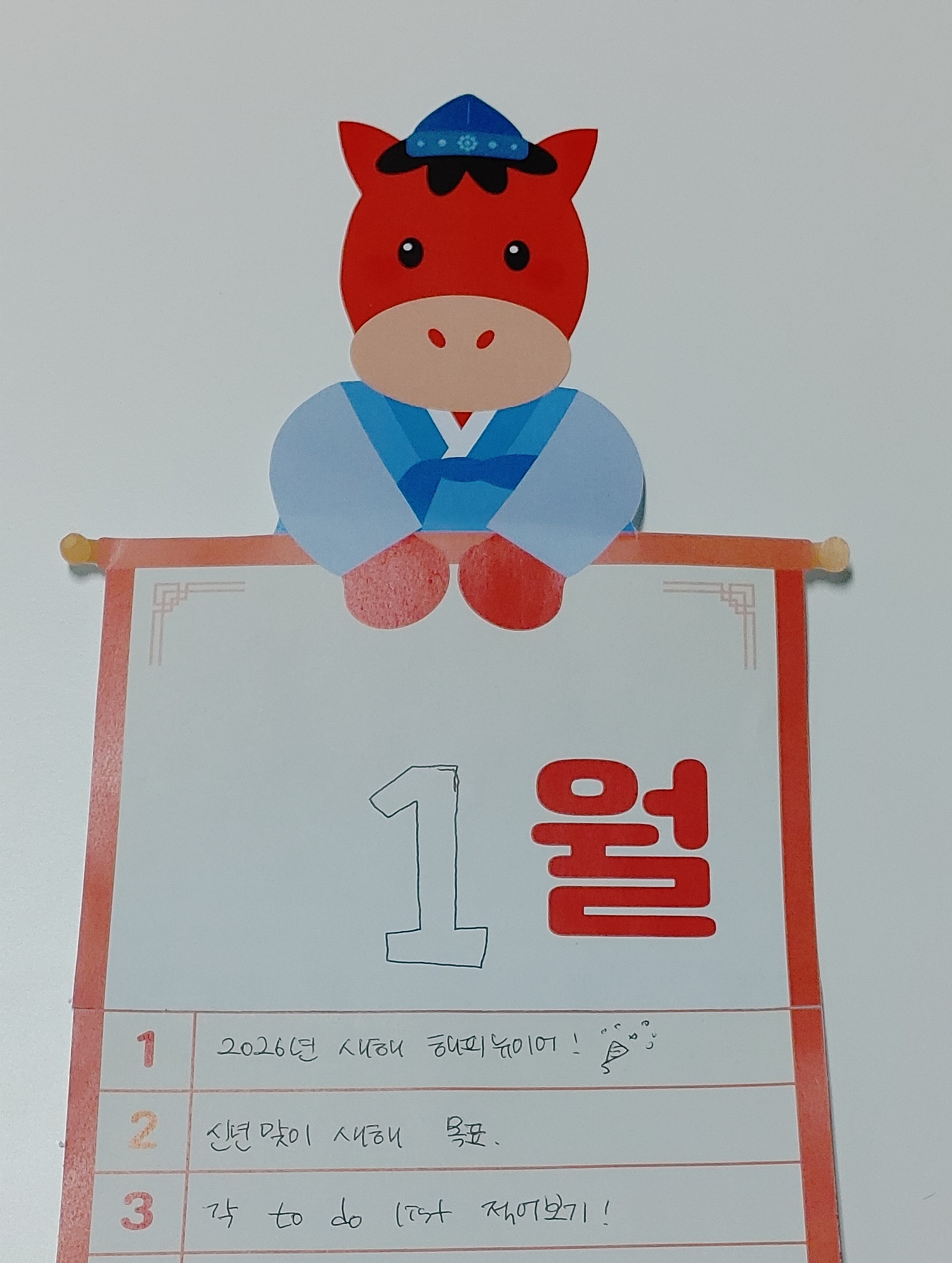 한 달 동안의 일정이나 기록들을 작성할 수 있는 붉은 말 롱 달력,