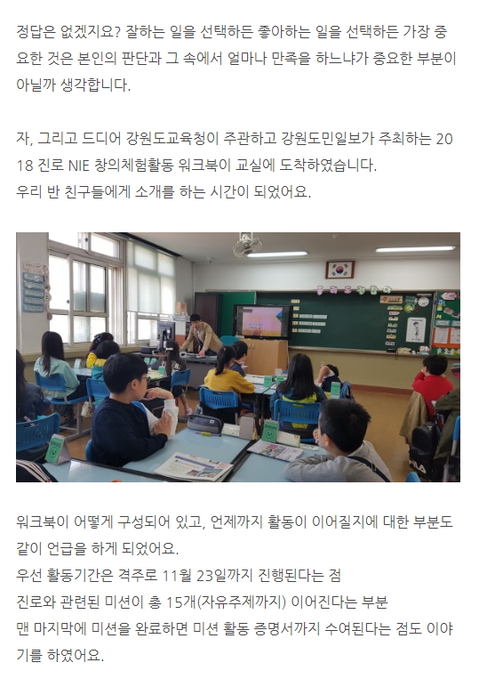 진로선택 우리반 친구들의 의견과 진로워크북을 소개합니다.