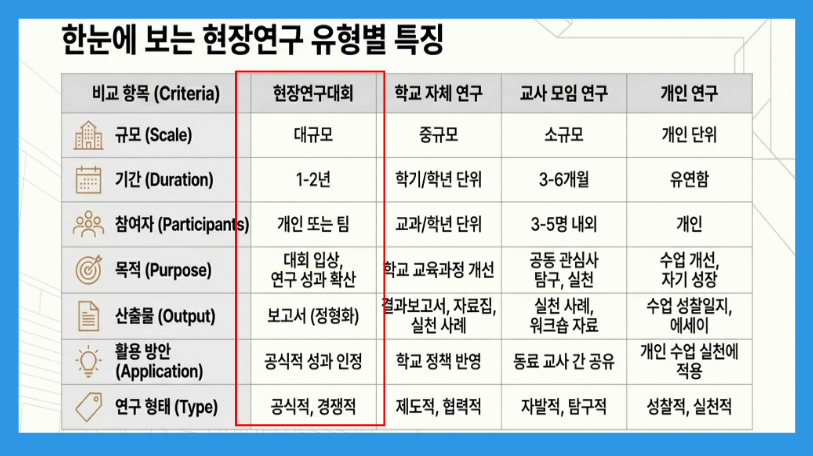 연구대회 심사위원의 관점에서 단순한 보고서 작성을 넘어, 수업의 질을 높이는 연구의 첫걸음을 함께하세요.