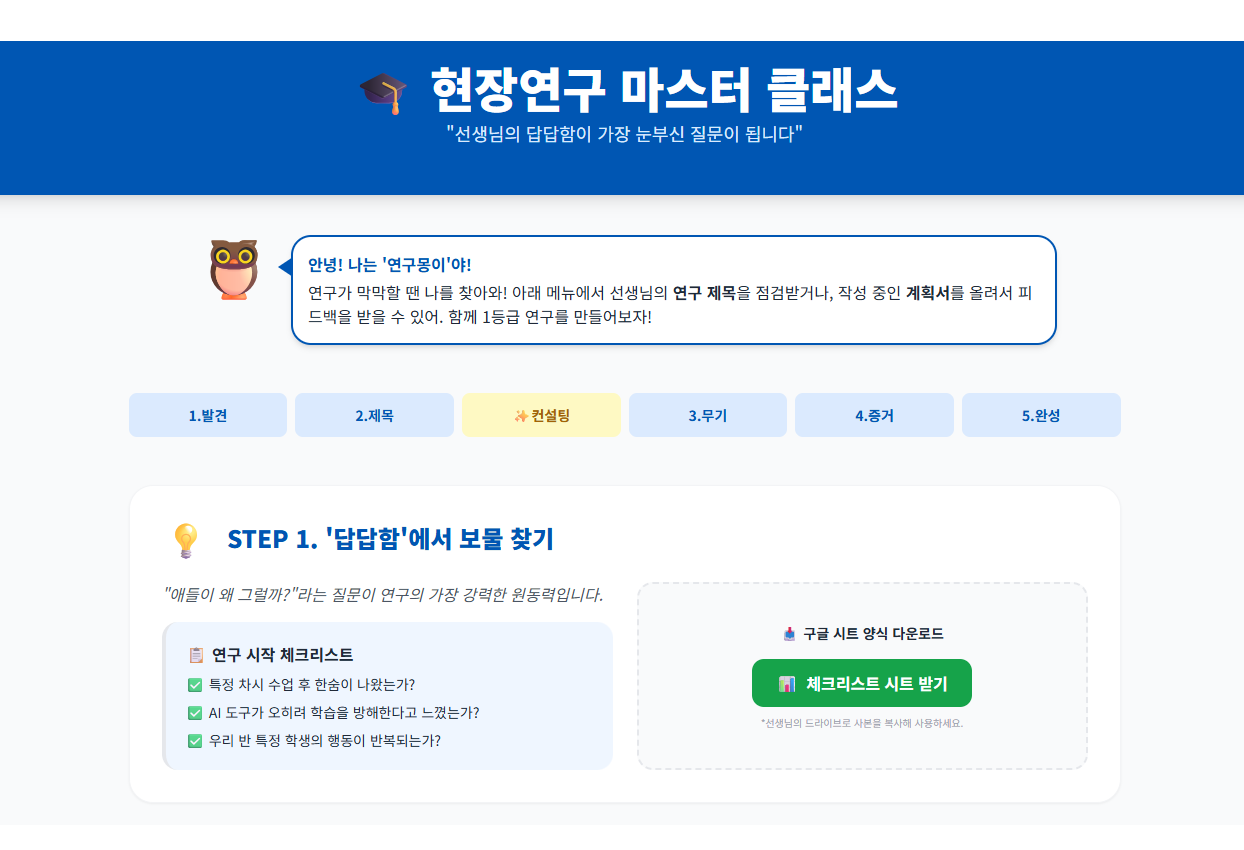 바이브 코딩으로 만든 현장연구 마스터 클래스 버젼 제공(참고용으로 활요 가능함)