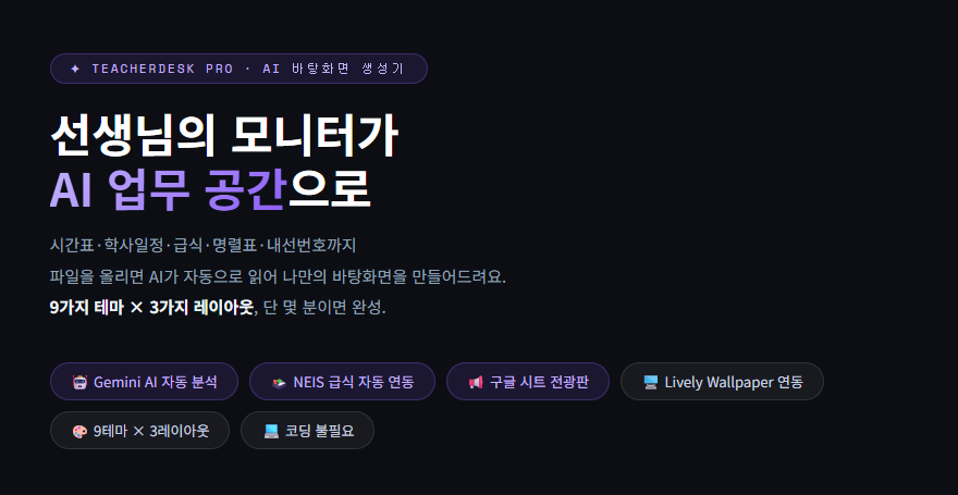 선생님 AI 바탕화면 'TeacherDesk Pro' (초등용)