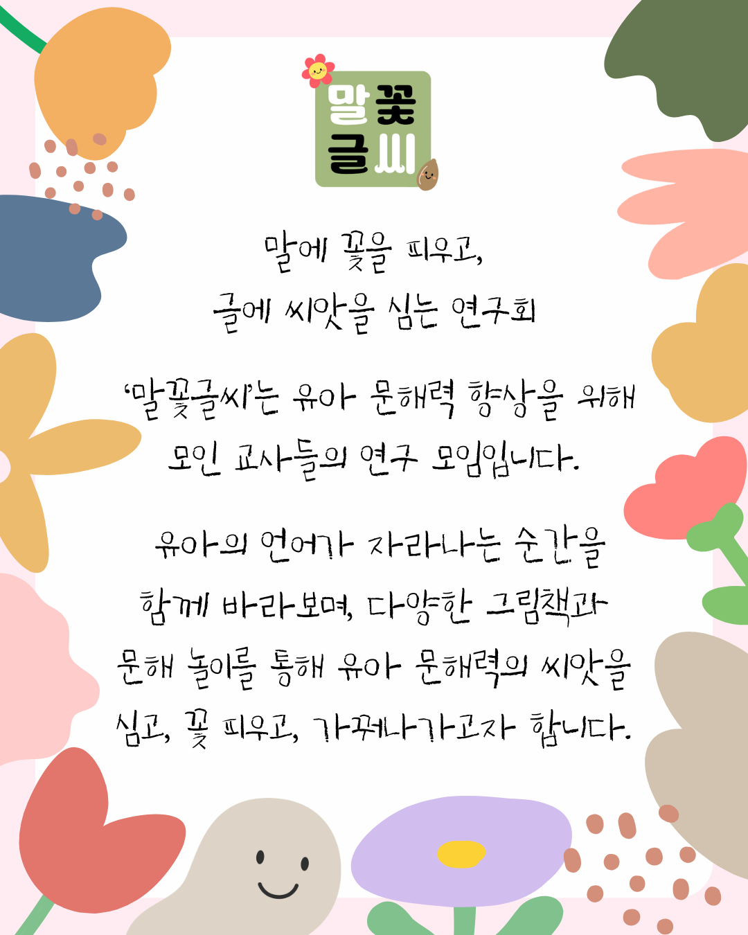 ‘말꽃글씨’는 유아 문해력 향상을 위해 모인 교사들의 연구 모임입니다.