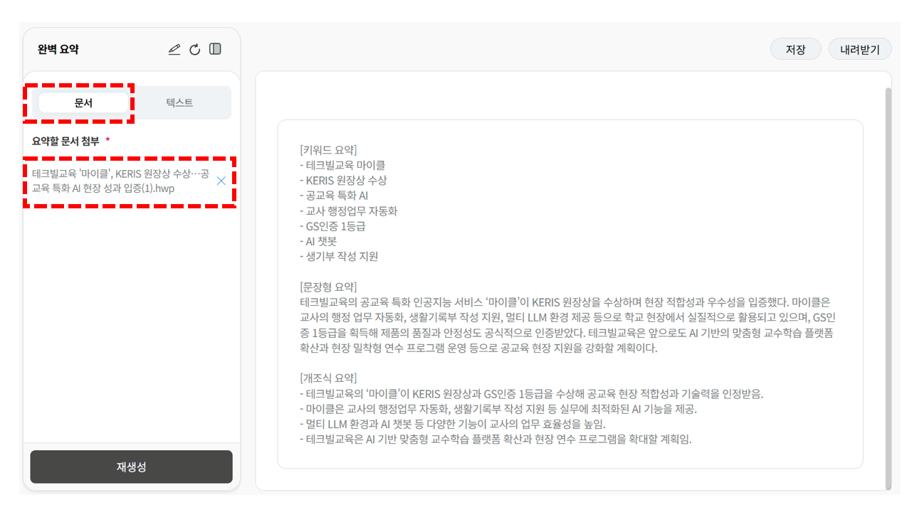 - PDF, DOCX, HWP, PNG, JPG, JPEG 파일 1개 업로드