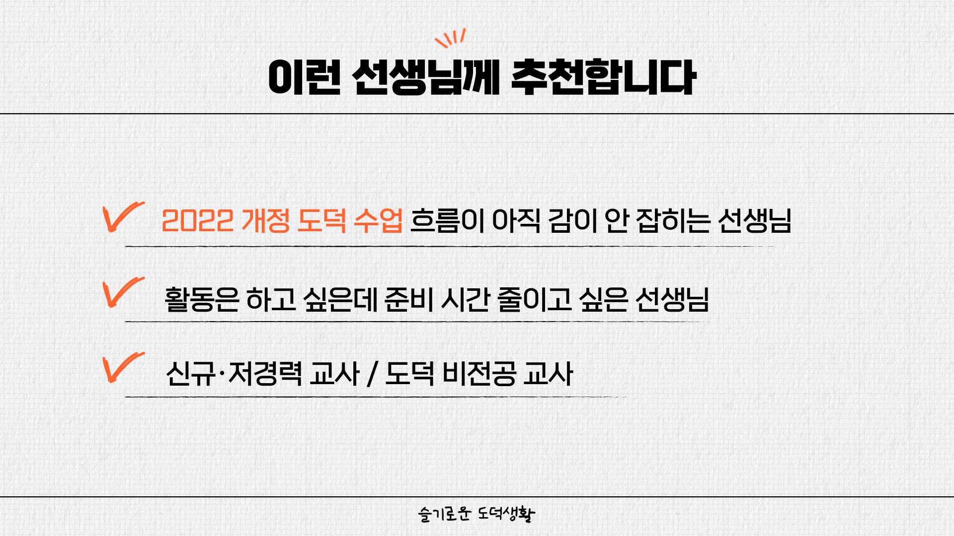 "도덕 수업을 보다 효율적으로 준비하고, 학생 참여가 살아 있는 수업을 실현하고 싶은 선생님"