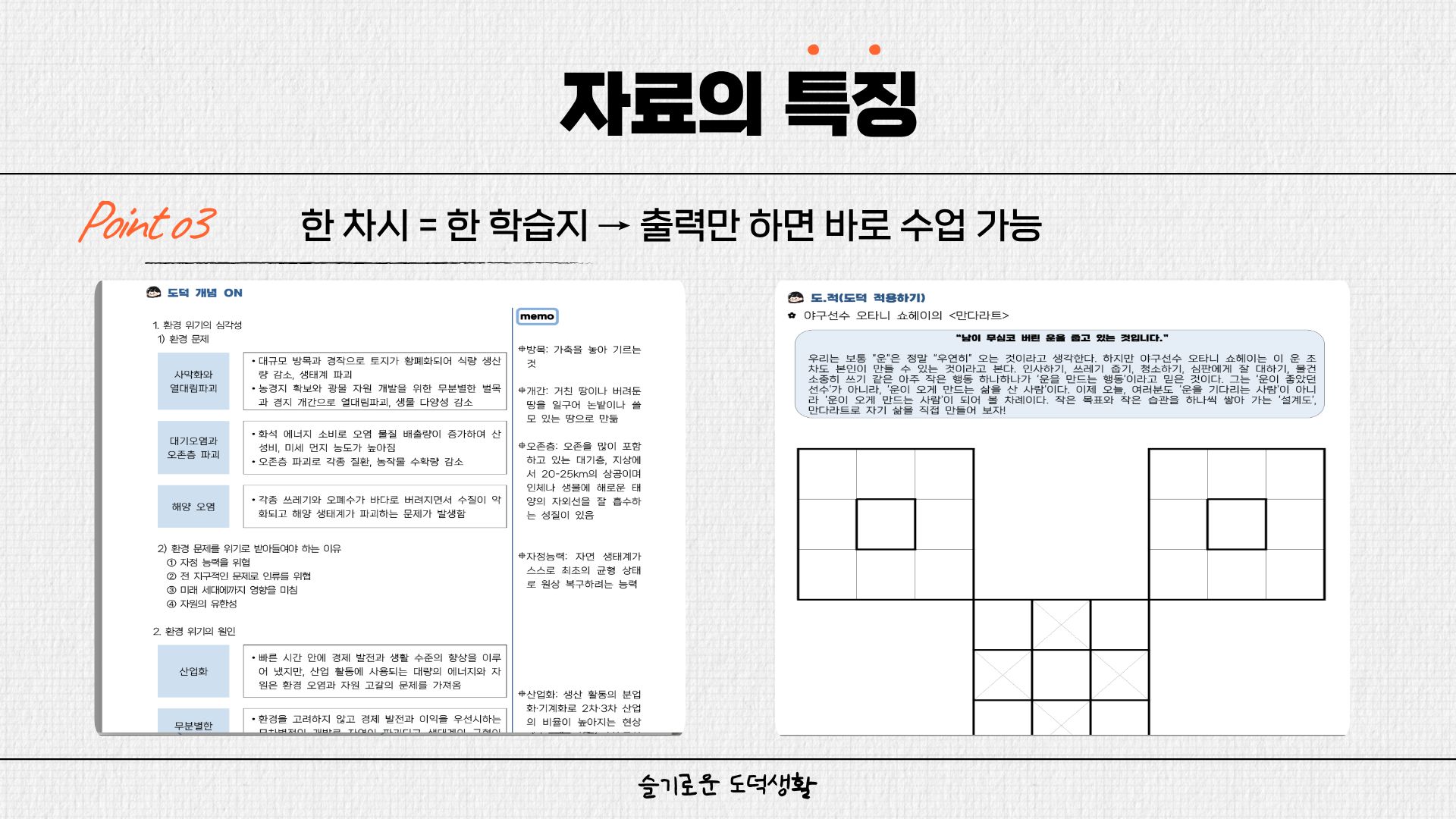 교실에서 바로 활용 가능한 도덕 수업 학습지를 중심으로 구성하였습니다.