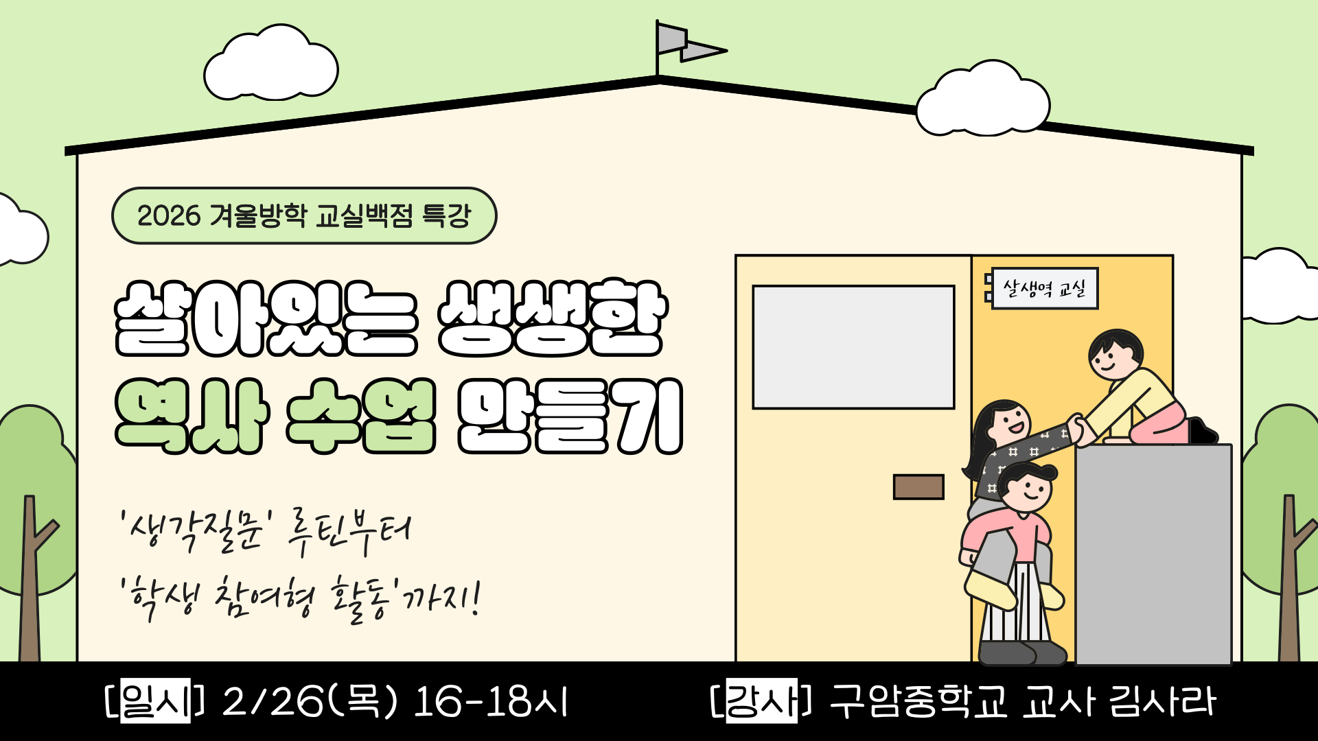 지난 2월 26일, 2026 겨울방학 교실백점 묶음 연수에서 진행했던 '살아있는 생생한 역사 수업 만들기' 강의 녹화본입니다.