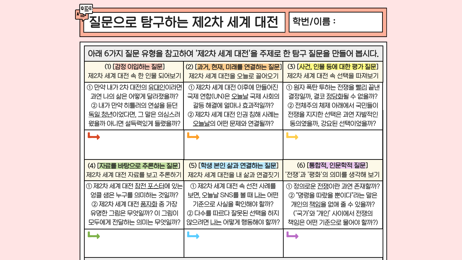 살아있는 생생한 역사 수업 만들기 - '생각질문' 루틴부터 학생 활동까지!