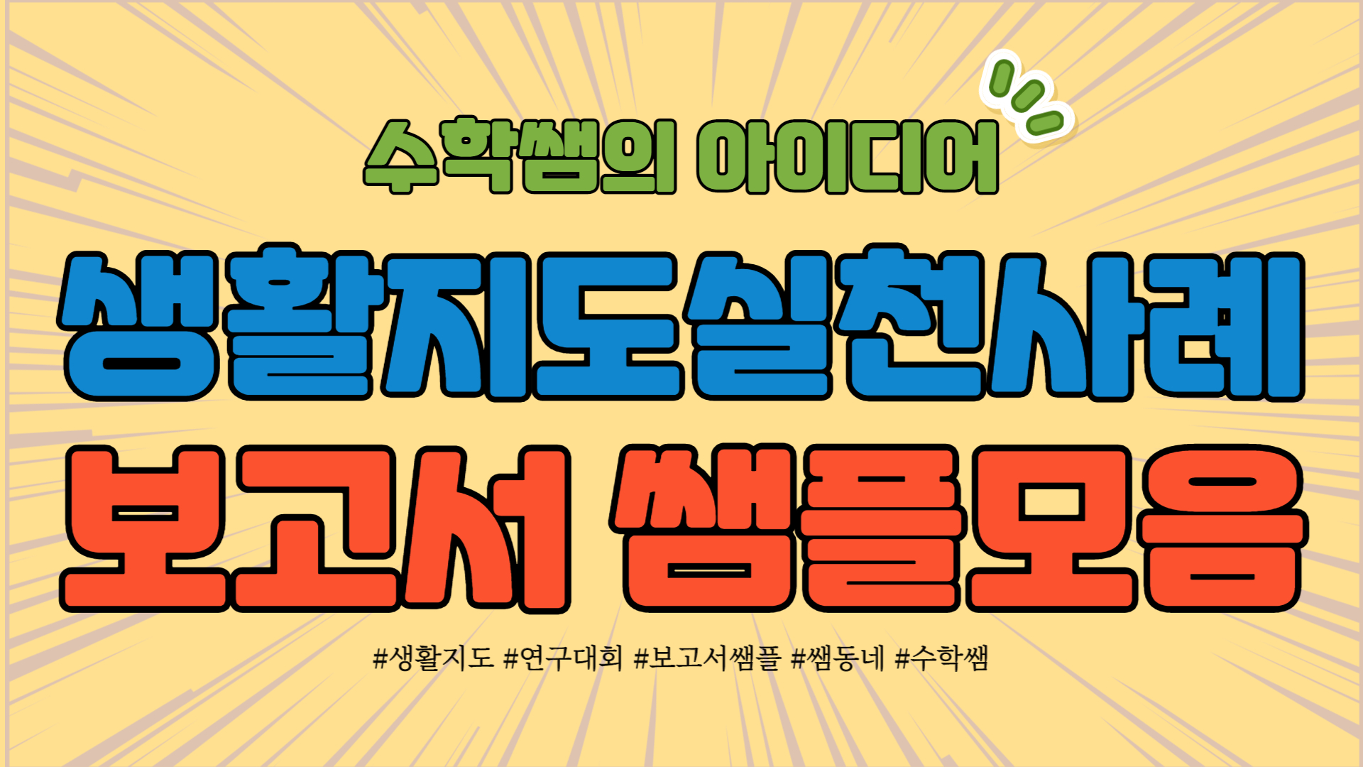 모두 연구대회에서 등급을 받은 계획서와 보고서이기 때문에 좋은 결과를 이루어 내길 겁니다. 참고만 해서 본인의 생활지도를 당당히 이루어 내시기 바랍니다^^