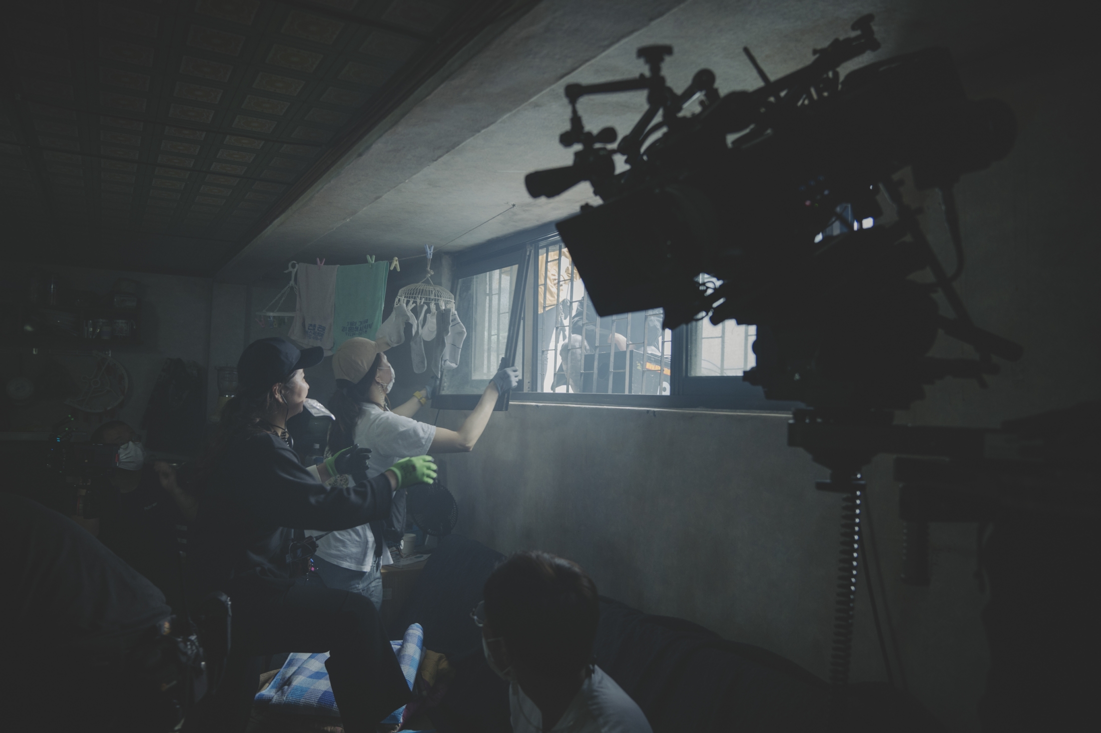 기생충으로 비유되는 기택(송강호)네 집은 반지하, 숙주로 비유되는 박사장(이선균)네는 언덕을 오르고 계단을 올라야 정원이 나오는 집이다. 자본주의사회에서 새로운 계층의 구조인 ‘돈’이 얼마나 있는가를 집을 통해 보여주고 있다. 또한 박사장네 집의 통유리로 보이는 녹색의 잔디와 빛이 너무 평온하다. 반대로 기택네 반지하에서 보이는 풍경은 취객의 노상 방뇨이고 지나가는 사람들이 기택네를 내려 볼 수 있는 위치에 있는 시끄러운 곳이다. 두 집 모두 거실에서 밖이 보이지만 보이는 장면은 너무 다르다. 이 장면 구성을 통해 그들의 삶을 분명하게 보여주고 있다. 그냥 지하가 아니라 반지하로 보여준 것은 저 창이라는 매개를 통해 안락한 쉼과 불편한 시선의 대조를 보여주고자 했던 것이 아닐까 싶다. 다른 기생충인 전 가정부 문광(이정은)과 그의 남편은 빛도 보이지 않는 어둠인 지하벙커에 살고 있다. 사채까지 끌어다 쓰는 등 기택네 삶보다 더 어려운 삶을 살고 있음을 극명하게 보여준다.
