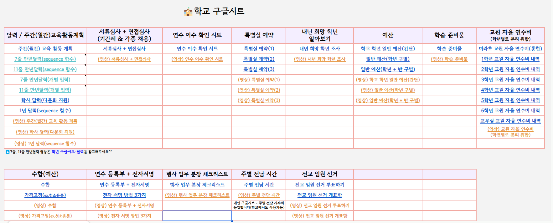 학교, 학년, 담임 교사를 위한 구글 시트 63종