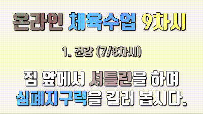 이 활동은 등교 개학 이후 paps측정 및 건강 영역 수행평가를 위해 온라인 체육 수업에서 미리 경험시켜주기 위해 계획하였습니다.