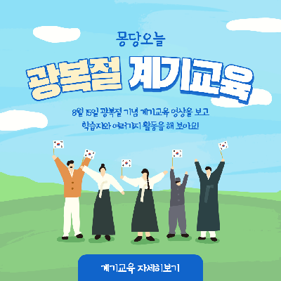 [계기교육] 오늘은 무슨 날? 8월 15일 광복절 선생님들께서 교실에서 계기영상을 보여줄 때 아쉬운 느낌이 든 적이 있으신가요? 영상 내용이 너무 어렵거나, 내가 가르치고자 하는 방향과 다른 영상을 보여줄때면..