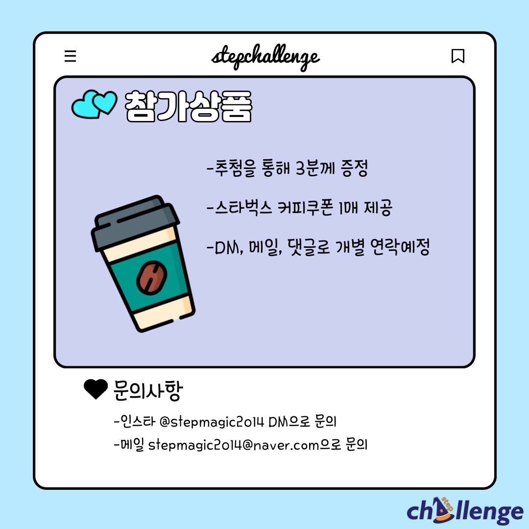 *참가상품 : 추첨을 통해 3분께 스타벅스 커피쿠폰 1매 제공