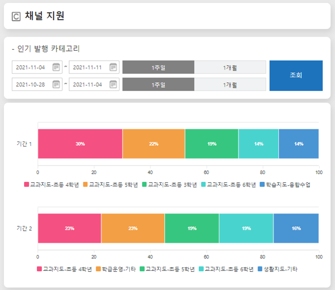 채널지원 페이지에서 실시간 인기 자료를 확인하면서 빠르게 선생님들이 원하시는 콘텐츠, 쌤모임을 생산하면 완전 인기 짱이겠죠??