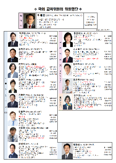 국회 교육위원회 홈페이지에서 내려받은 국회 교육위원 명단입니다. 아는 분 계시면 의견 개진해주세요. 말 안하면 귀신도 모릅니다.