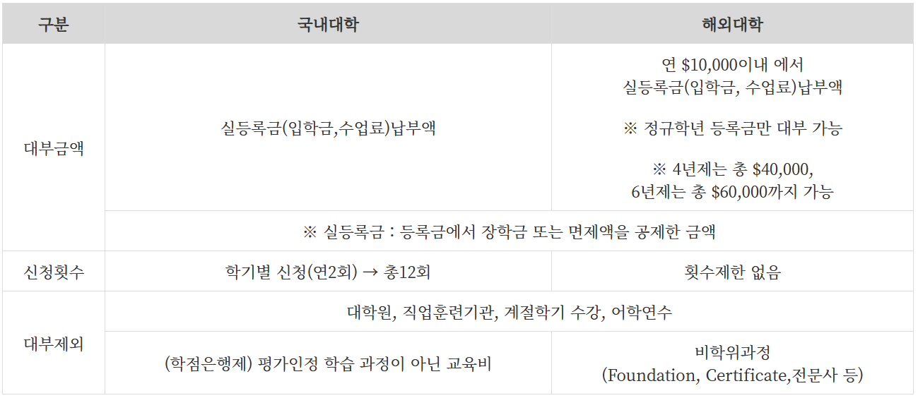 2. 일반대출, 주택대출, 행복도약대출, 금융기관알선 대출, 학자금 대출입니다.