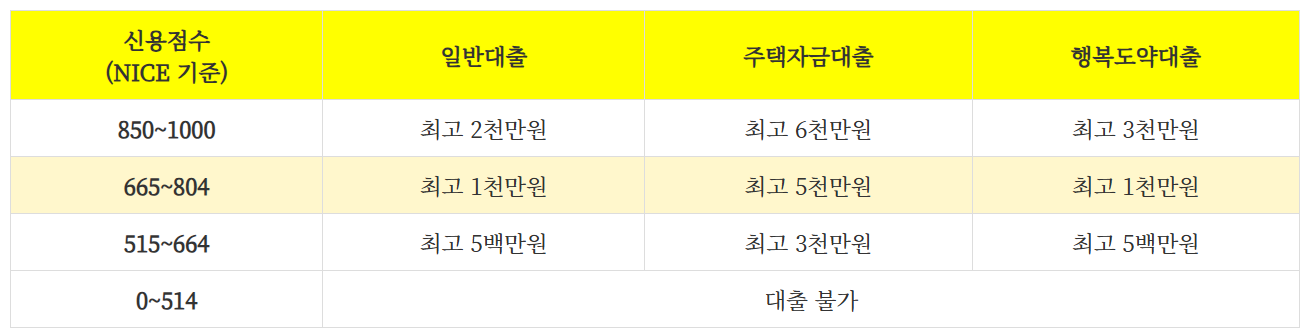 3. 일반대출, 주택대출, 행복도약대출의 경우