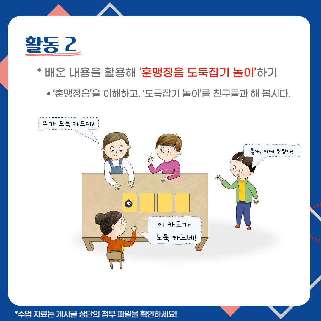 영상 시청과 활동지 작성, 카드 놀이 활동을 통해
