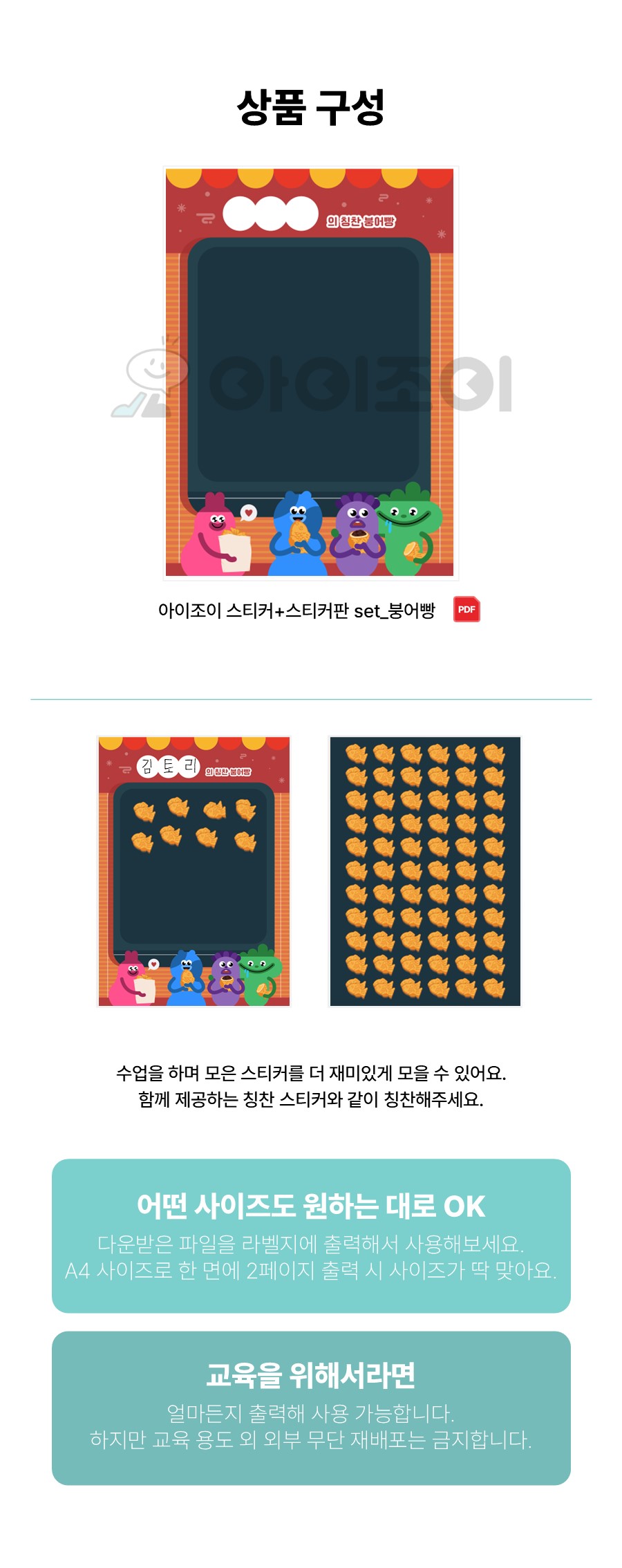 붕어빵 모양 칭찬 스티커와 스티커판 SET 입니다.