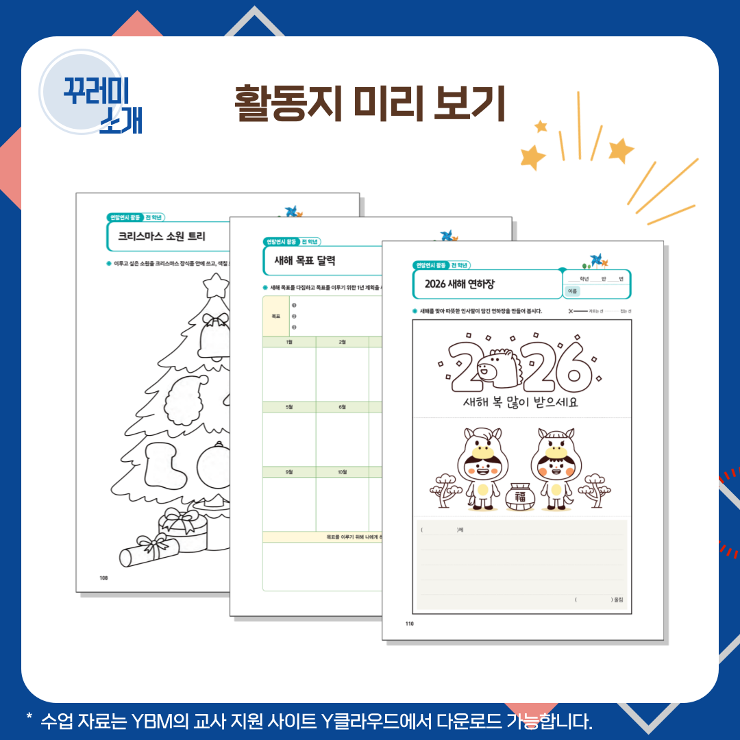 크리스마스 소원 트리, 새해 목표 달력, 2026 새해 연하장 등 다채로운 활동지로