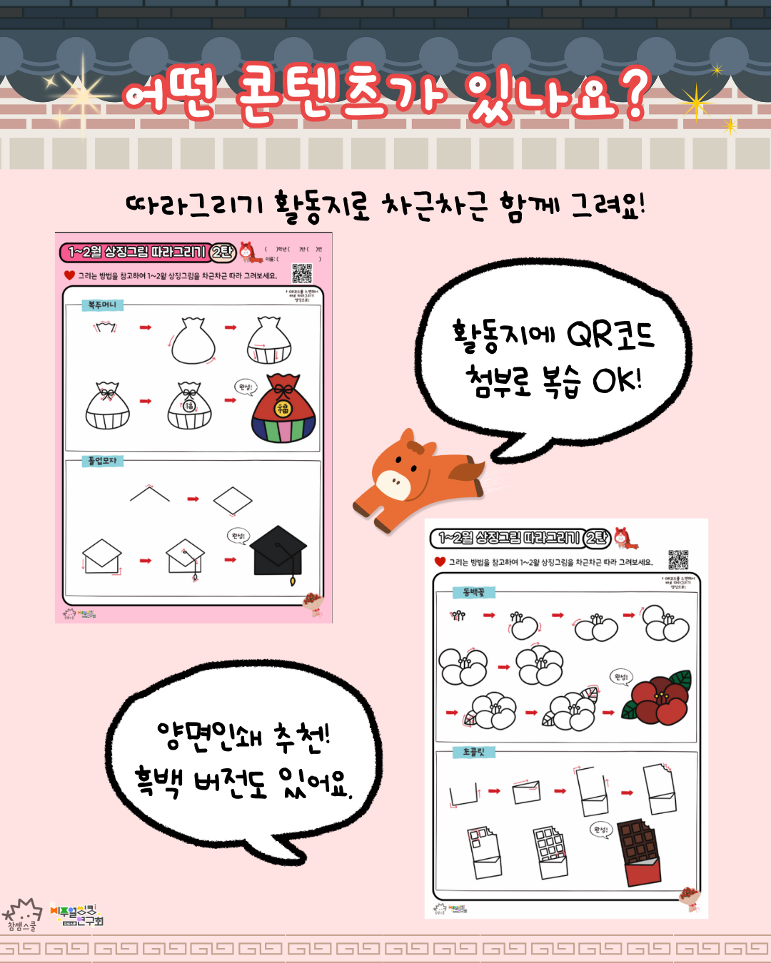 상징그림 따라그리기 1~2월 <2탄> 복주머니, 졸업모자, 동백꽃, 초콜릿