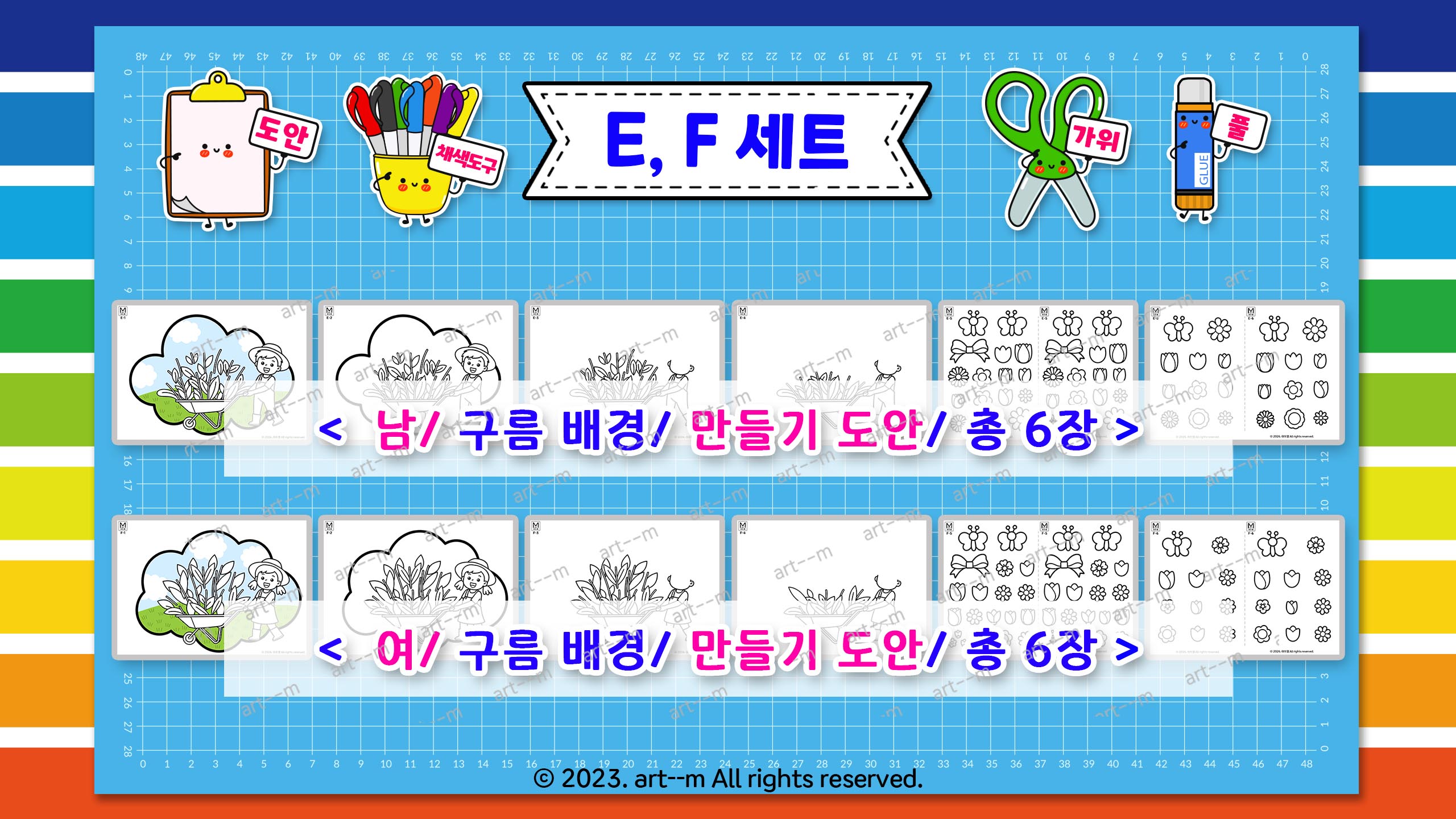 3) E, F 세트(총 12장) 만들기 도안