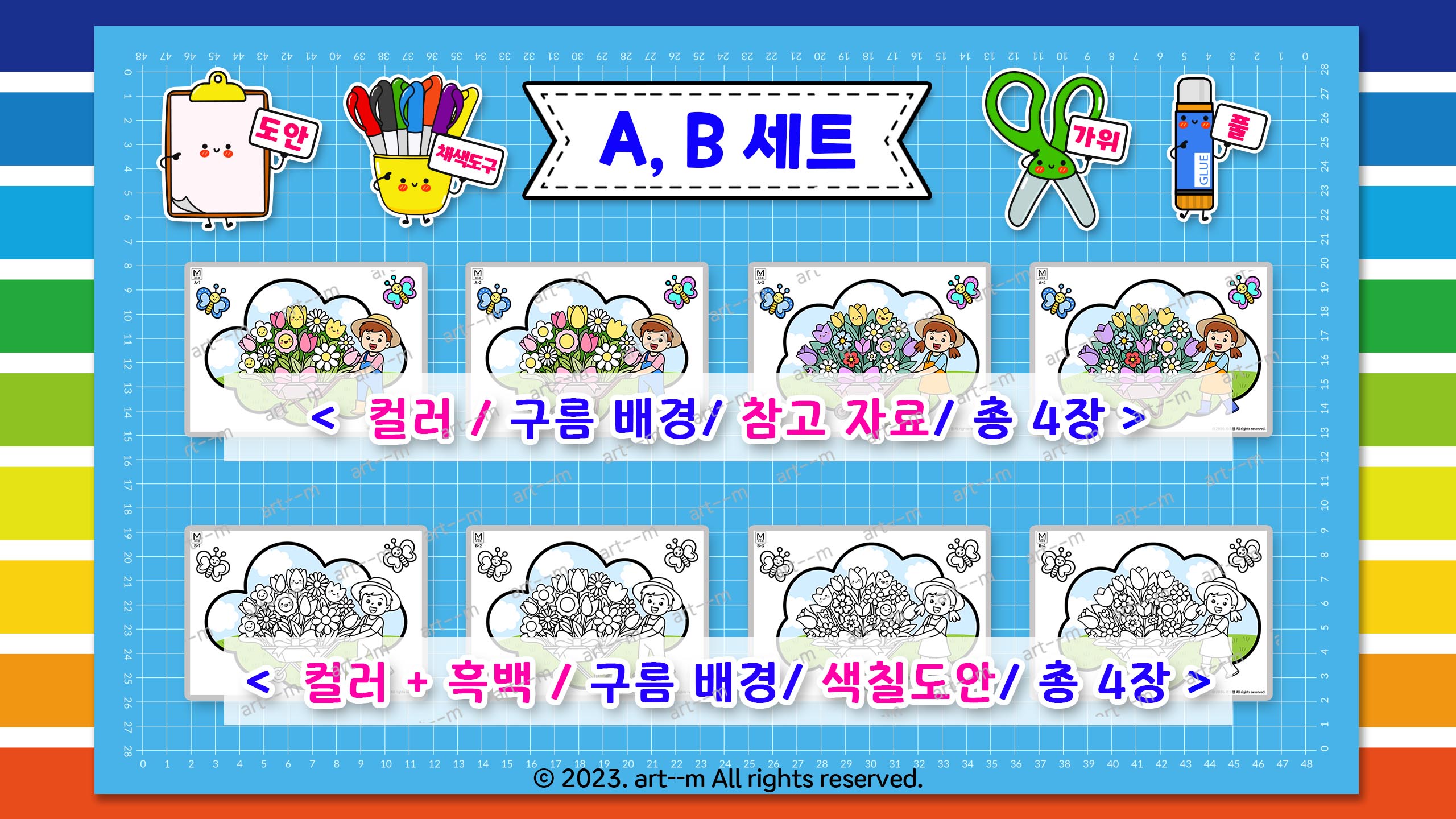 1) A, B 세트(총 8장) 색칠도안